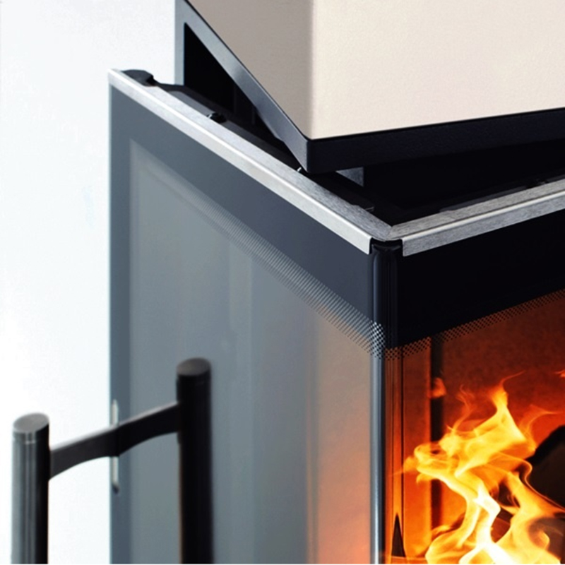 Kamna jsou vybavena bez-roštovou spalovací komorou, velkým rohovým prosklením, robustní celo-litinovou konstrukcí a mohou být napojena na externí přívod vzduchu.